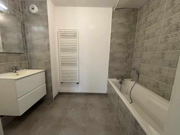 Kembs loechle (68680)Dans un environnement calme, au 1er étage (avec ascenseur) d'une copropriété construite en 2015, un appartement 2 pièces composé d'une entrée avec placard intégré, d'une cuisine équipée moderne ouverte sur un séjour lumineux de 22m² avec accès balcon de 10m², d'un WC séparé, d'une chambre de 11.48m² et d'une salle de bains équipée accessible par la chambre. Il dispose également d'un garage fermé en souterrain et d'une place de parking à l'extérieur. Disponible de suite. Chauffage individuel gaz. Provisions pour charges comprenant : eau froide, électricité des communs, nettoyage cage d'escalier, maintenance extincteur + ascenseur + porte de garage, petites réparations de communs, entretien de la chaudière et ordures ménagères.
