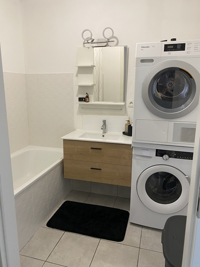 Thann (68800)Appartement au dernière étage avec ascenseur et terrasse comprenant: Une entrée wc séparé, salle de bain équipée, 2 chambres, cuisine équipée ouverte sur un séjour avec terrasse. Place de parking privée et garage au sous-sol
